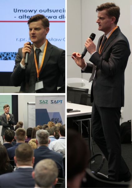 Temat outsourcingu - szans i zagrożeń z nim związanych szeroko omówił radca prawny pan Przemysław Ciszek. Uwagę uczestników przykuły różnice pomiędzy outsourcingiem a APT.