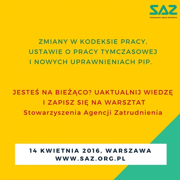 W związku z licznymi zmianami w prawie pracy, Stowarzyszenie Agencji Zatrudnienia organizuje warsztaty dla agencji zatrudnienia, których celem jest praktyczne omówienie nowych przepisów.